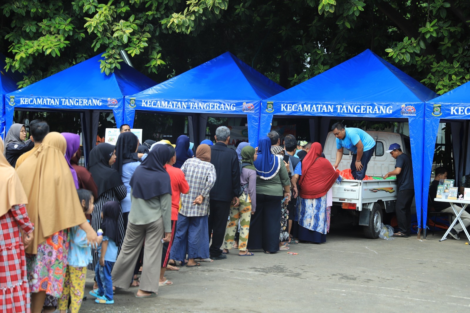 Masyarakat begitu antusias untuk mendapatkan paket sembako dengan harga murah yang disediakan oleh Dinas Ketahanan Pangan (DKP) Kota Tangerang. Tak heran, tidak sampai satu jam 300 paket sembako yang disediakan pun habis terjual.