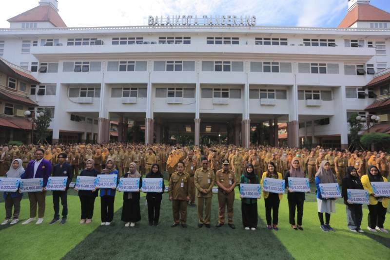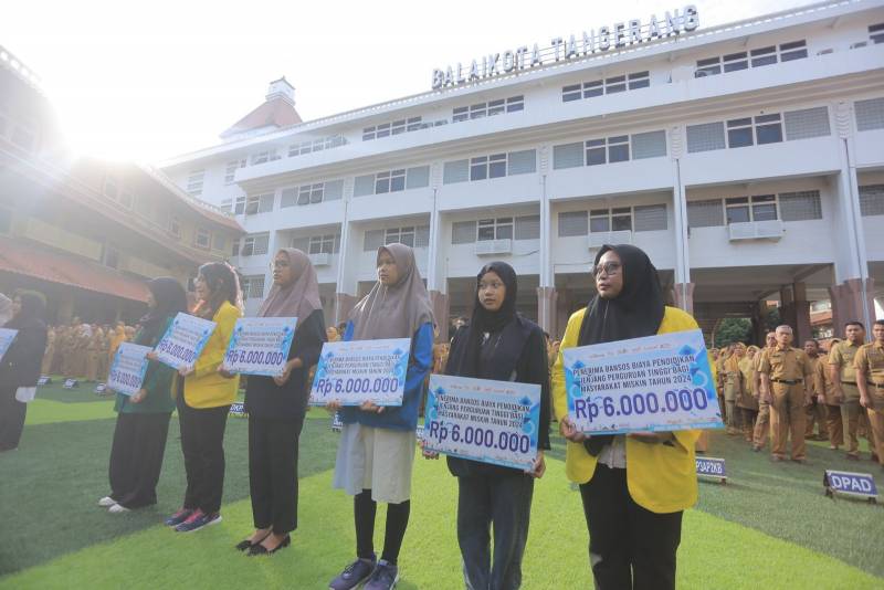 Pemerintah Kota (Pemkot) Tangerang melalui Dinas Sosial memberikan bantuan sosial pembiayaan kuliah kepada 46 mahasiswa kurang mampu. Penyerahan beasiswa ini dilakukan secara langsung oleh Penjabat (Pj) Wali Kota Tangerang Nurdin di Plaza Pusat Pemerintahan Kota Tangerang, Senin (5/2/24).